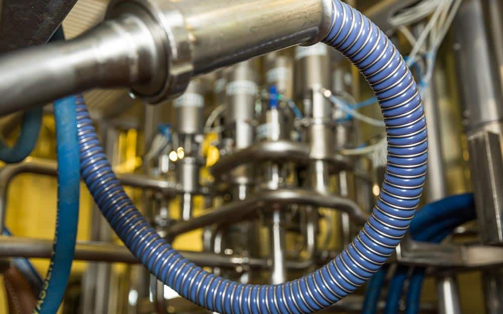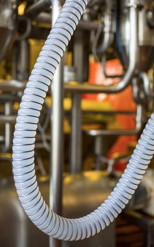 One special advantage of PTFE hoses is of course their flexibility, which caters for minor variations in dimensions. They offer the necessary flexibility so that at filling plants, the feed lines can be quickly connected to the filling heads. Campina can thus achieve a significant reduction in set-up times and process costs.