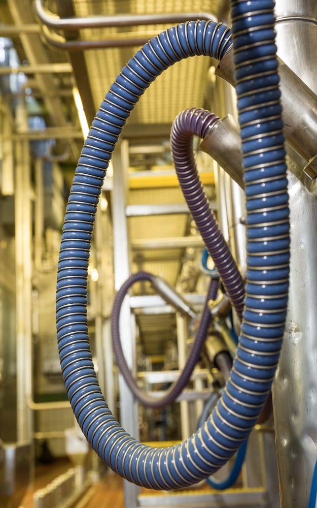 Rainer Kahmann, the manager of the technical warehouse at Campina and Christian Koschorreck, responsible for engineering at Campina, consulted Mehmet Susever, MD of nautical elements. For 17 years he has assisted Campina with process technology at the plant in the role of an external service-provider. All three started looking for alternative solutions and came across HANSA‑FLEX Boffzen, the specialists for metal and PTFE hoses. Such hoses were absolutely ideal for Campina’s requirements. They joined forces to come up with the very best solutions – so immediately presenting the specialists from Boffzen with an enormous challenge.