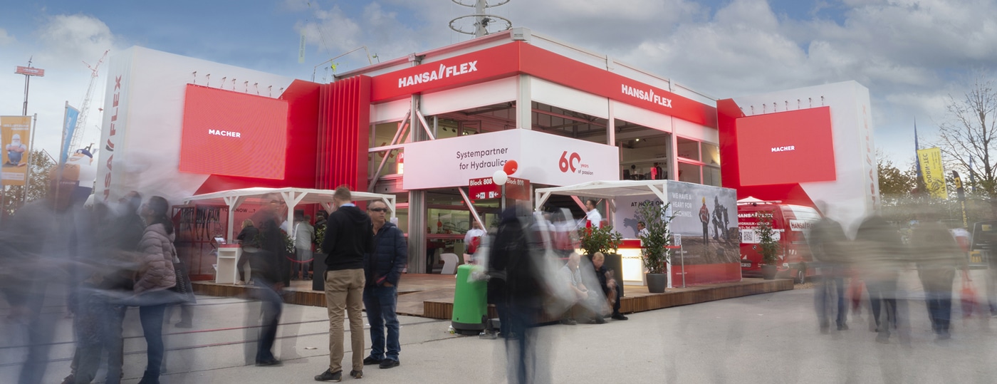 We are present for you at exciting trade fairs and public exhibitions worldwide. Experience the passion of HANSA‑FLEX live on the exhibition stands and see for yourself the variety of products and customised services. We look forward to your visit!