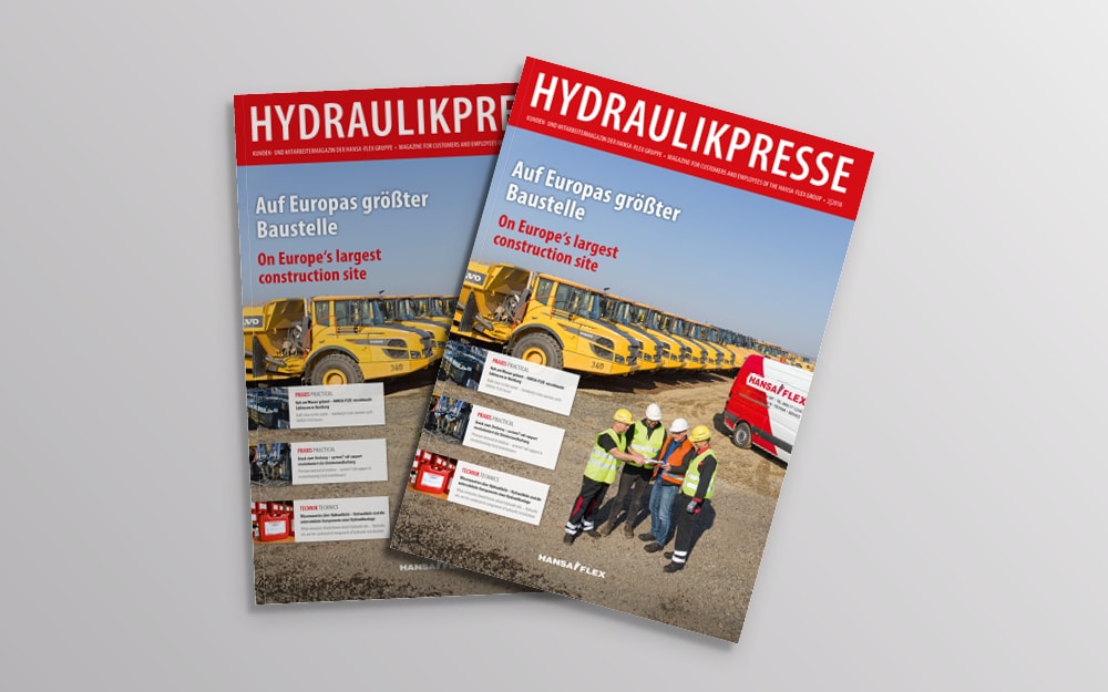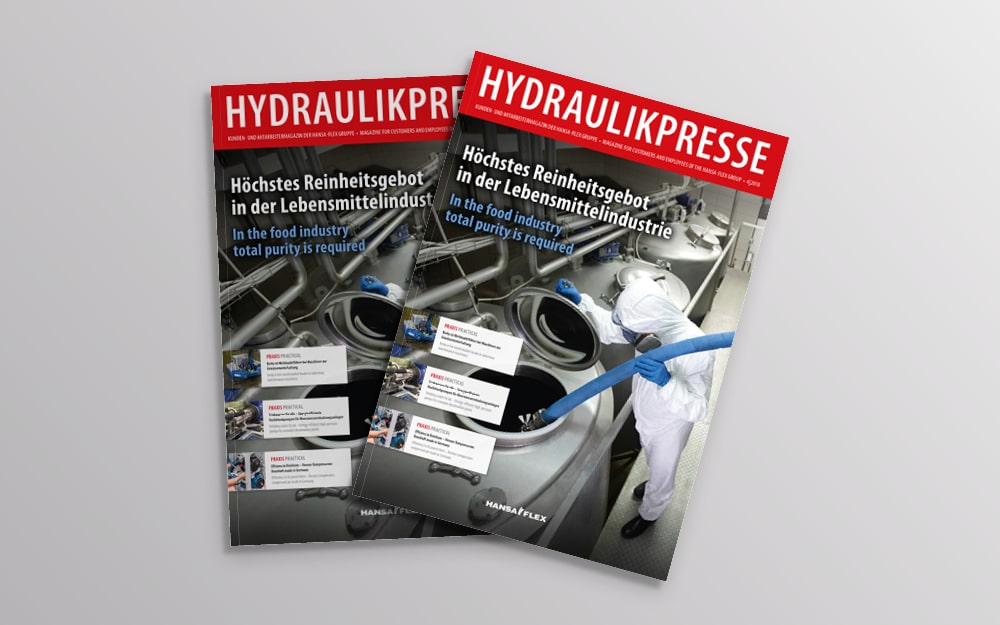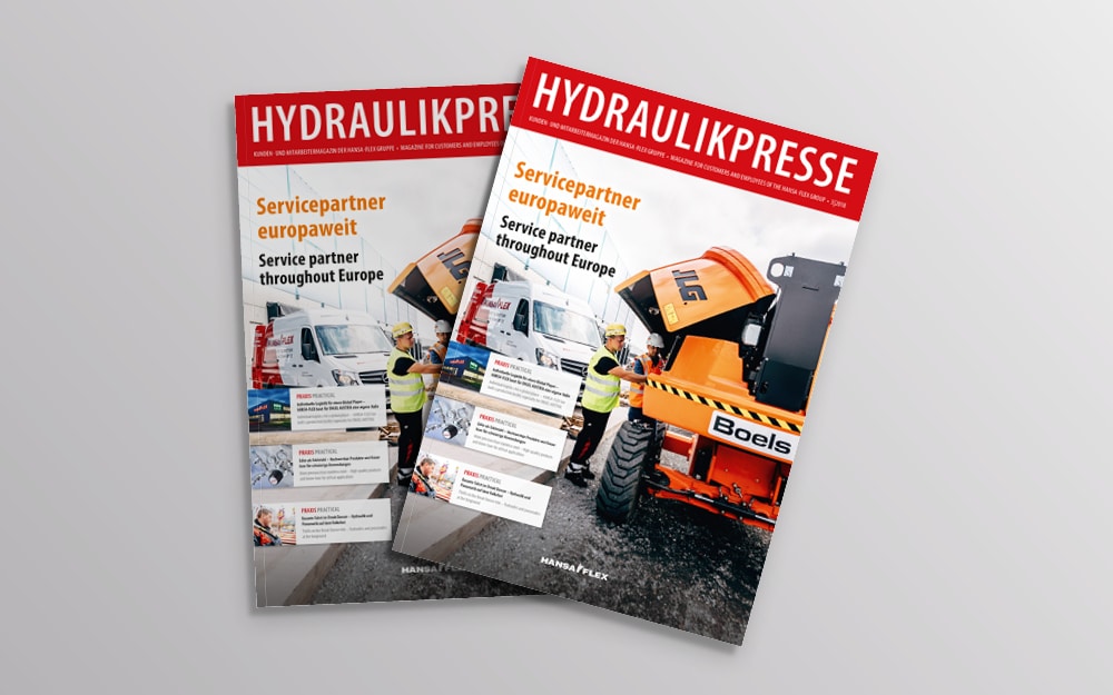 Heute stellt die HYDRAULIKPRESSE ein professionelles Magazin dar, das sich vornehmlich mit den Herausforderungen, Lösungen und Anwendungen in der Fluidtechnik befasst. Denn Hydraulik bedeutet HANSA‑FLEX! Sie können unser Magazin kostenlos abonnieren. Wir bieten Ihnen jede Ausgabe hier auch als PDF-Dokument an. Sie erschien 2018 in einer deutsch-englischen Ausgabe.