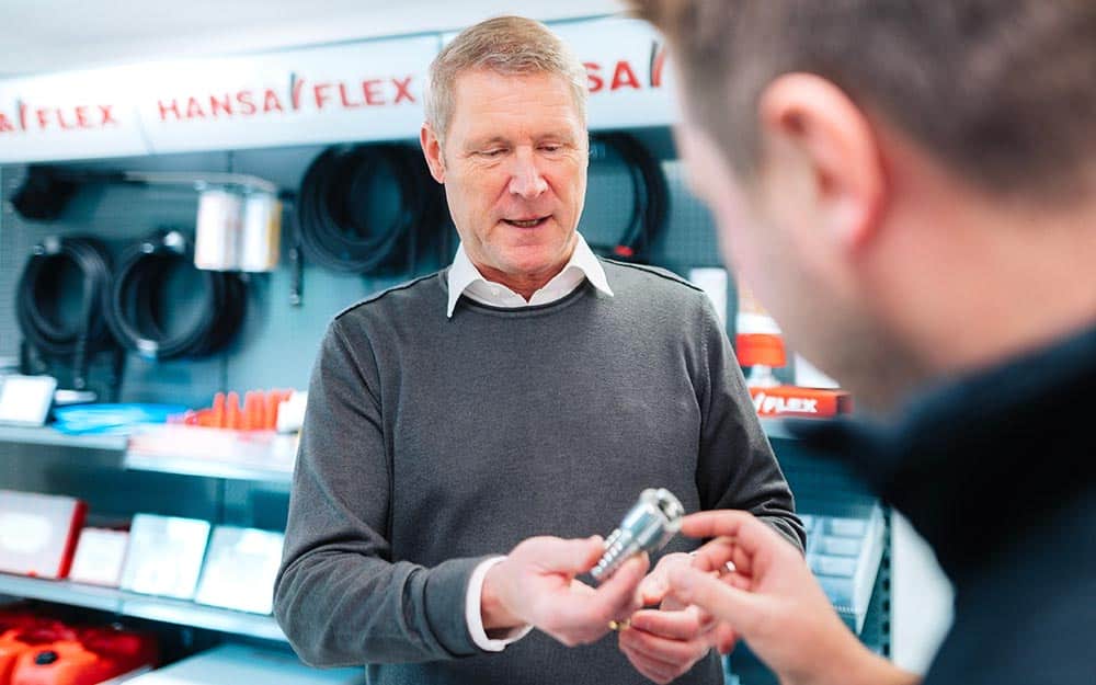 Christian van der Veen, Head of Branch Operations, emphasizes how perfectly the HANSA-FLEX online shop complements the branch network. It gives customers convenient access to standard products and frees up employees for more personal consultations. Digitization enhances service while preserving essential personal contact and will further intensify our service offering in the future.