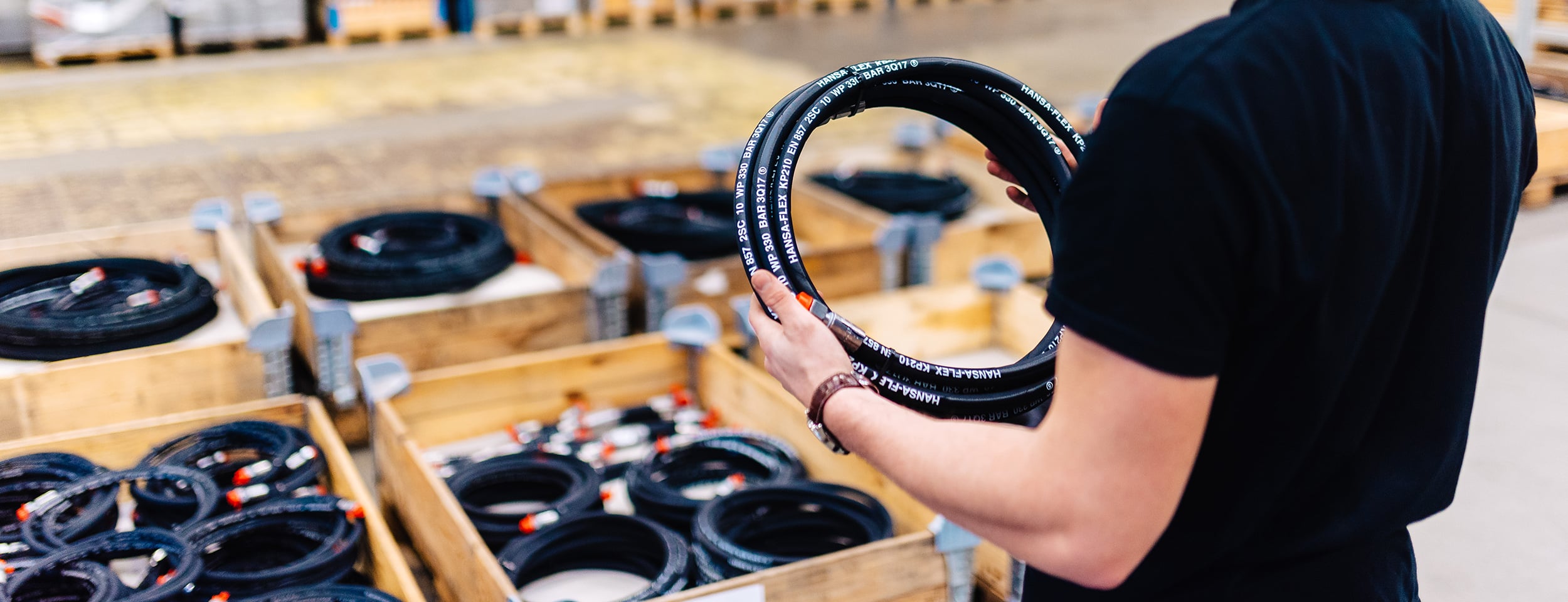 In addition to inspection, HANSA‑FLEX provides comprehensive advice on the optimum storage of hydraulic hoses and hose lines in accordance with DIN 20066:2021-01.