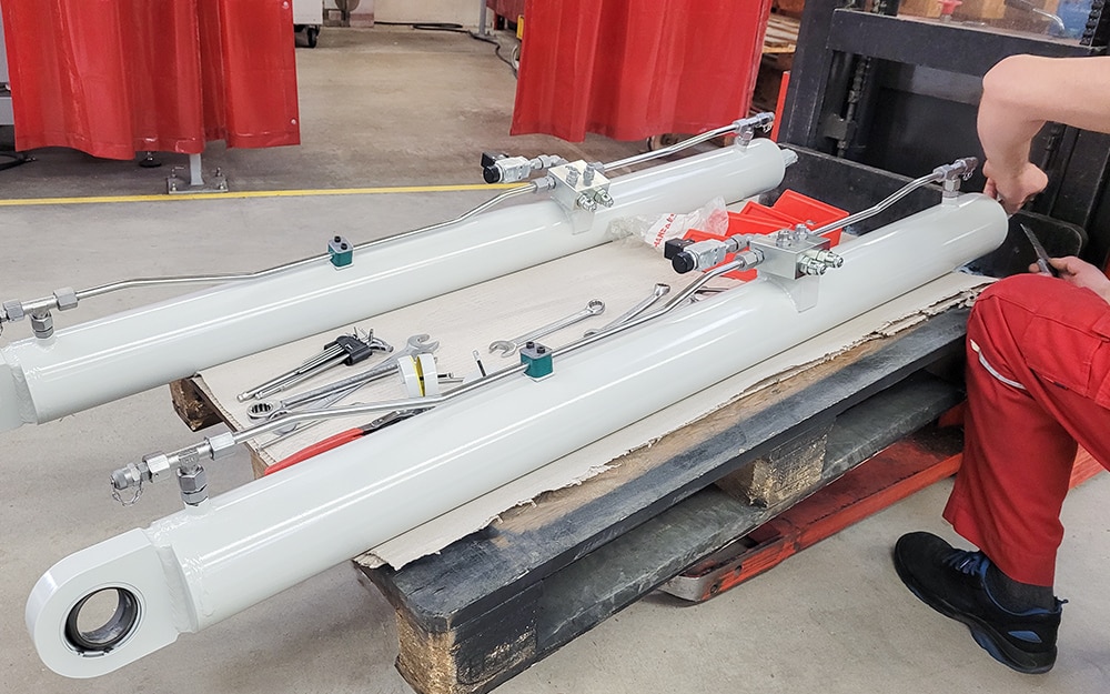 HANSA‑FLEX manufactures hydraulic cylinders as replacement parts, prototypes or new product lines to your individual requirements as one-off, small batch or series manufactured items. The cylinders, which are designed for the intended application and use standardised components, provide an attractive price-performance ratio combined with easy procurement of spare parts.