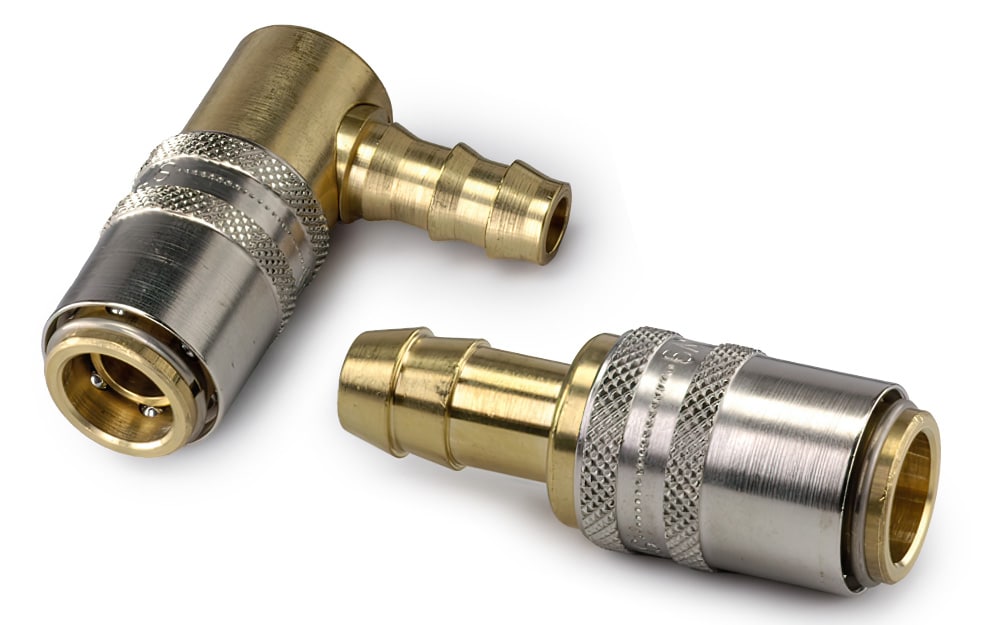 Pipe couplings are designed for high pressures and pressure impulses. Flat-face sealing plungers prevent air entry and ensure low oil leakage losses. Their robust construction makes pipe couplings suitable for demanding conditions of use with large pressure fluctuations. They therefore find widespread application in the automotive industry.