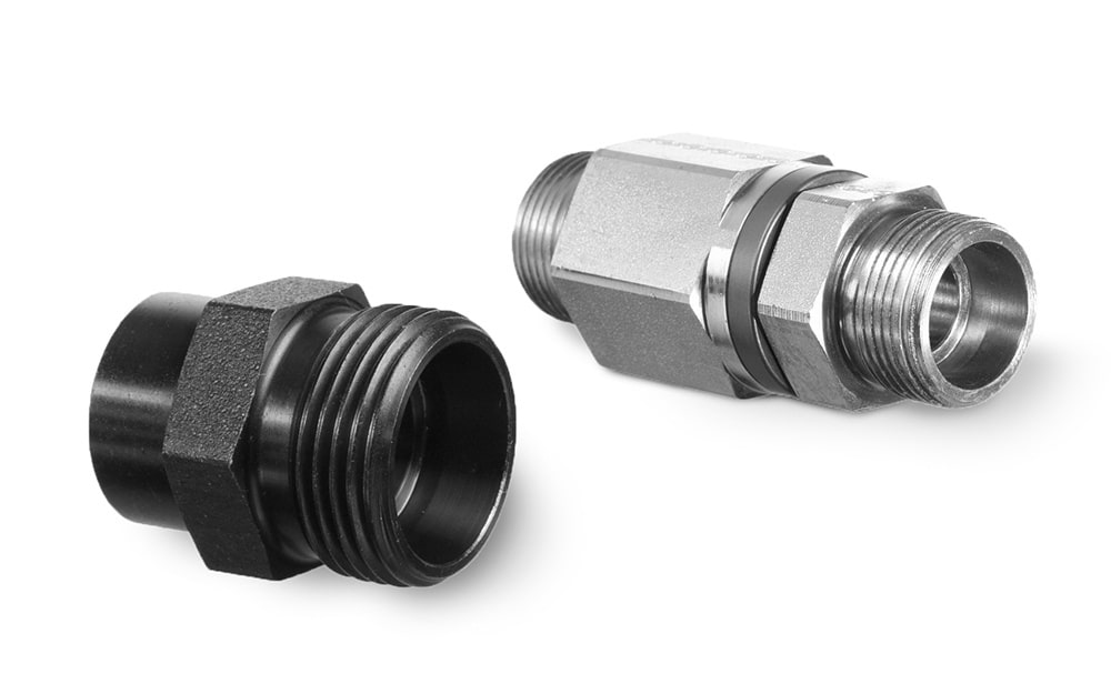 Rotary fittings from HANSA‑FLEX join hose lines to a fixed point on systems with rotating or swivelling machine components. They prevent torsional strain on the hose and thus avoid premature wear. Welded fittings can be welded on directly at the point where they are needed. The HANSA‑FLEX welded cone fitting has an O-ring and is shaped so as to fit precisely inside the counterpart of the phosphated and oiled threaded connector.