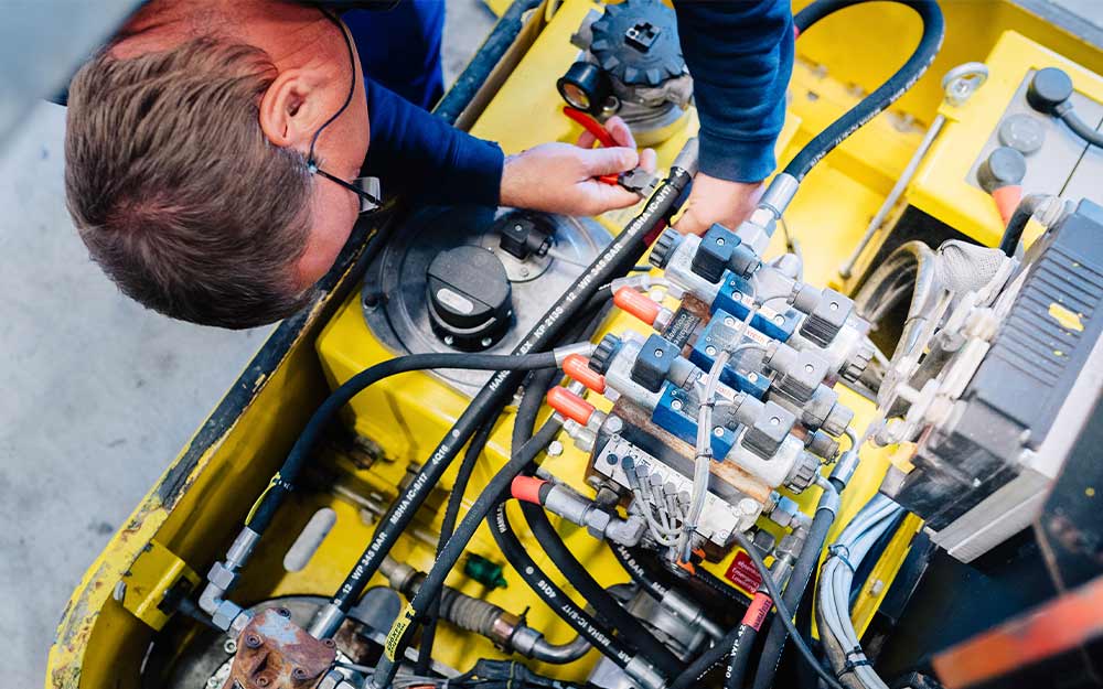 The Doka service teams are regularly on-site at major construction locations such as the Nuttlar viaduct. They support the formwork specialists and carry out rapid repairs to formwork equipment and DoKarts. Wherever necessary maintenance work is carried out directly on site, in order to avoid expensive downtime. However, with such a wide variety of formwork technology it isn’t possible to keep spare parts in stock for all machinery and systems. This also applies to the hydraulic equipment, which plays a major part in Doka’s operations. “It would take too long to order spare parts which we don’t have in stock from our HQ in Austria. We therefore looked for an efficient hydraulics partner in Germany”, says Jancke. The major factor in the decision to cooperate with HANSA‑FLEX was the company’s comprehensive branch network, which guarantees short distances to the construction sites wherever they are. Further decisive factors were fast delivery times and reliable quality: “On our construction sites we work with pressures of up to 700 bar. That means we can’t accept any compromises when it comes to hydraulic hose lines”, he adds.