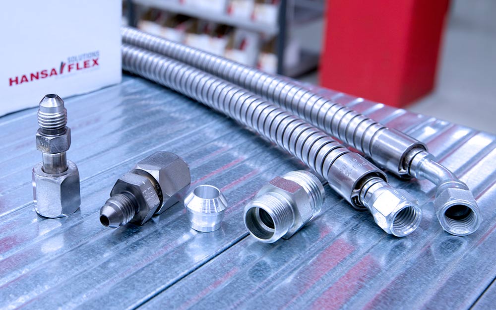 Despite the above, the custom designs and broad range of standards that apply to pneumatic component connections pose continual challenges for HANSA‑FLEX. “It is not only standard threaded connectors that are used but also 60°, 37°, 24° and military-standard threaded connectors. And all of these are sometimes measured metrically, sometimes in inches – meaning our complete services relate to a huge range of products,” commented HANSA‑FLEX sales representative Christian Henningsen. As a result, the staff in Hamburg work in close cooperation with the special fittings plant in Dresden-Weixdorf, which produces the military-standard threaded connectors among other components. HANSA‑FLEX also supplies metal and PTFE hoses produced in Boffzen, as well as industrial hoses, sealing technology and hydraulic components and provides associated services from its industrial and rapid hydraulic service teams. “We try to keep the number of different suppliers as low as possible. With its broad range of products and services, HANSA‑FLEX has long since been among the suppliers we work with,” Markus R. revealed