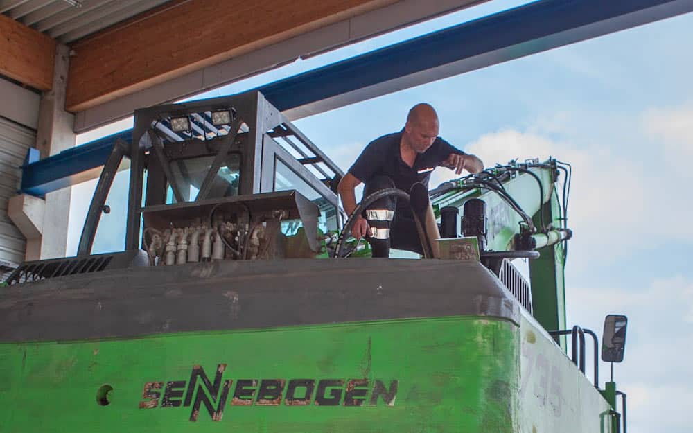 Pärast turvavestide ja kaitsekiivrite selgapanekut astume tehase territooriumile. Liikudes mööda puiduhunnikuga koormatud veoautost ja suurtest tootmishallidest, suundume hooldusala poole. Seal kohtume Holger Urbaniga, Pfeiferi mehaanilise hoolduse juhiga. Kui meie fotograaf on hõivatud välitingimustes pildistamisega, istun lühikeseks intervjuuks härra Urbaniga kontoris. Meie vestlust katkestavad sageli telefonikõned või Urbanile tulevad kolleegid, kes koordineerivad päeva töid. Härra Urban on hõivatud mees, sest mobiilsete ja statsionaarsete masinate hooldus peab olema planeeritud nagu kellavärk. Seadmete kättesaadavus on peamine prioriteet. Sellegipoolest leiab ta aega, et juhatada mind läbi kogu 50 hektari suuruse tehaseala.