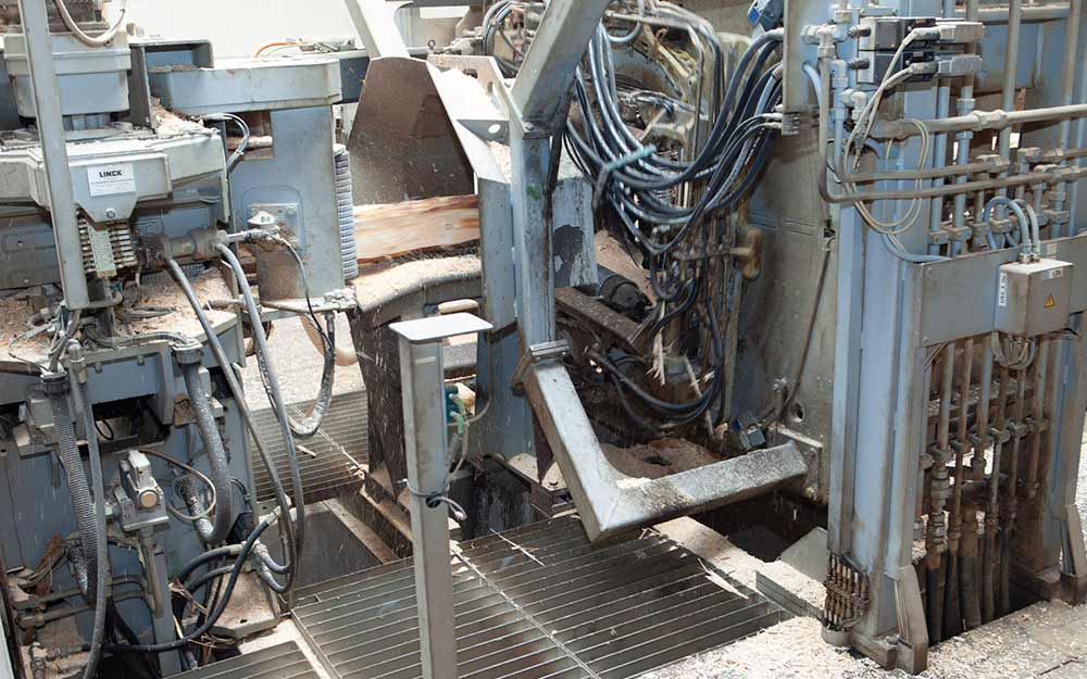 Siseneme saagimisliini haldushalli ning seal muutub esmakordselt väga valjuks. Palkide konveierilint liigub kiiresti mööda. Pöörlevad saagiterad lõikavad palke erinevates jaamades sobivateks tükkideks, kuni lõpuks valmivad lõpptootena saetud lauad kaubaaluste jaoks.