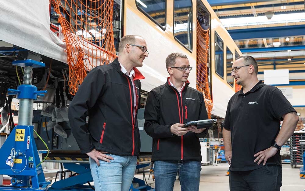 Kuna tööd tuli teha otse sõidukitel, viibisid 14 HANSA-FLEXi paigaldajat regulaarselt Stadleri tehases. See on märkimisväärne saavutus, arvestades, et kogu arendus toimus haru sees. Paul Sielaff ja Nicklas Meyer toovad esile kolleegide suurepärast koostööd ja koordineerimist.