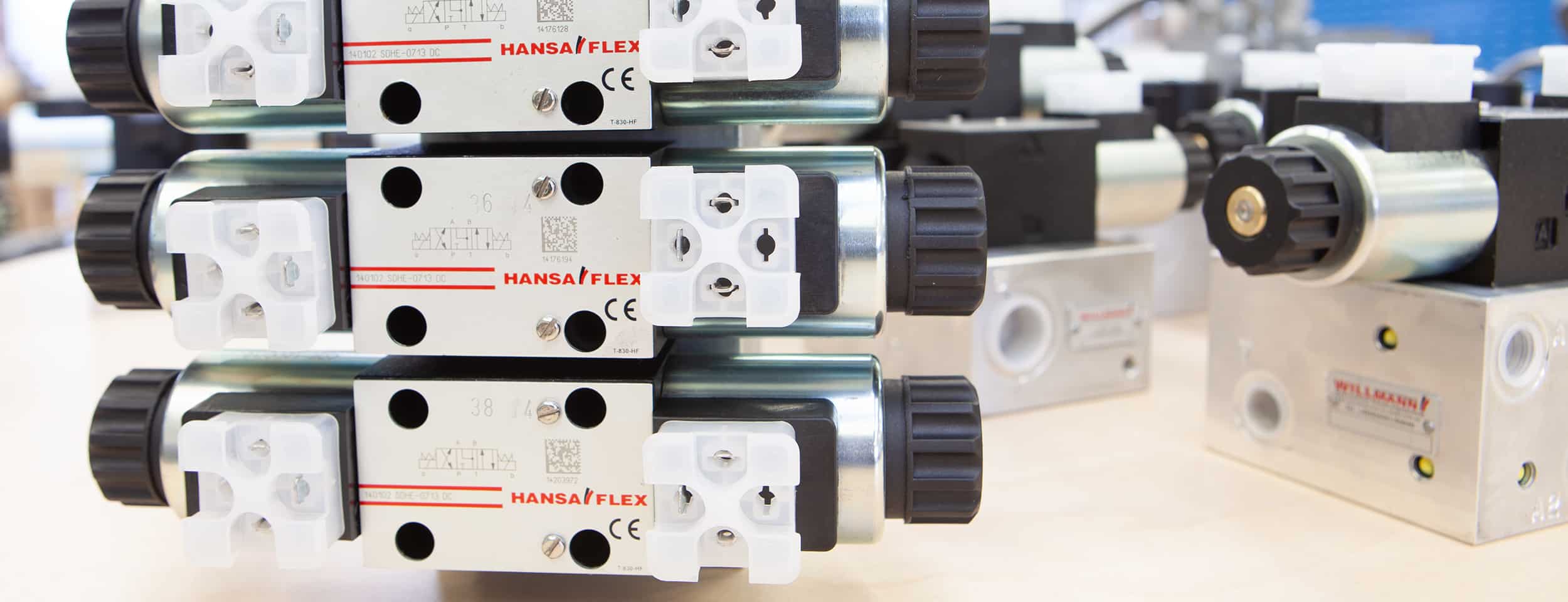 HANSA‑FLEXi veebipoest leiad mitmesuguseid proportsionaalseid ventiile, näiteks solenoidiga juhitavad suunaventiilid, rõhualandus- ja rõhulaskmisventiilid.