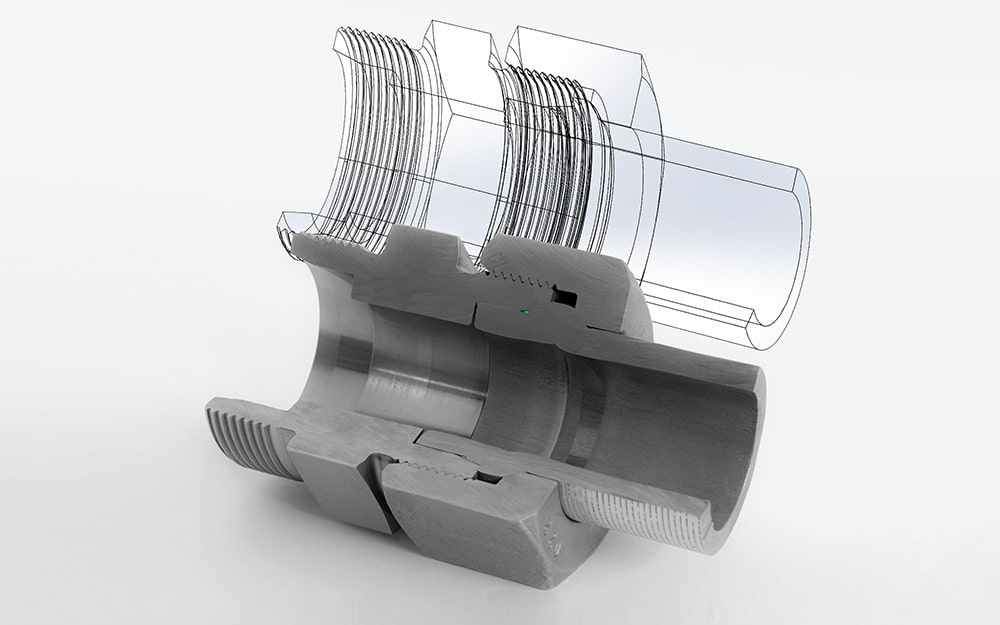 Integreeritud ülepingutuskaitse muudab torusüsteemi paigaldamise lihtsamaks. Torud ühendatakse standardiseeritud ühendusmutriga. Tootmise või kokkupaneku ajal ei ole vaja eriosi ega spetsiaalseid tööriistu. Lõikeringa kasutamata jätmine vähendab ka vale kokkupaneku riski.