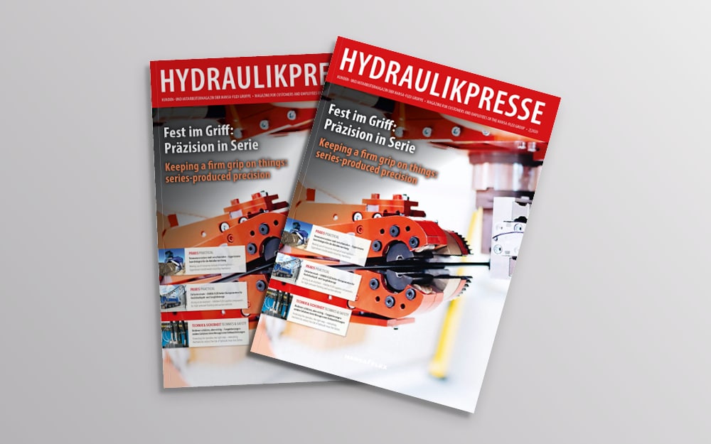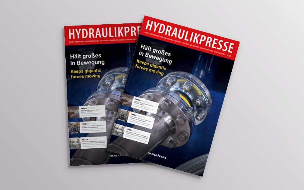 Täna on Hydraulikpresse professionaalne ajakiri, mis keskendub peamiselt vedeliktehnoloogia väljakutsetele, lahendustele ja rakendustele. Hüdraulika tähendab HANSA‑FLEXi! Meie ajakirja saad tellida tasuta. Iga numbri leiad ka siit PDF-dokumendina. 2020. aastal ilmus ajakiri saksa- ja ingliskeelsena.