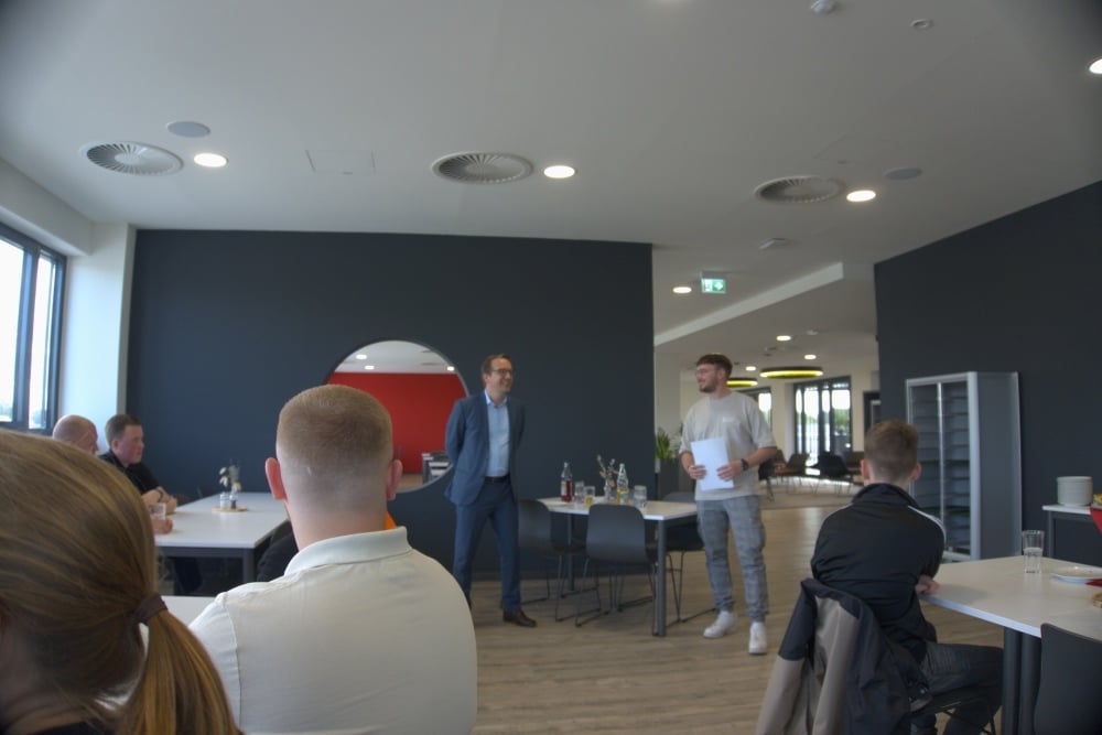 Alguses õppisid uustulnukad vanematelt praktikantidelt rohkem ettevõtte kohta ning said ohutusjuhendi. Seejärel sõid nad koos juhatuse liikme Florian Wiedemeyeriga hommikust. Florian rääkis oma karjäärist HANSA-FLEXis ja vastas erinevatele küsimustele.